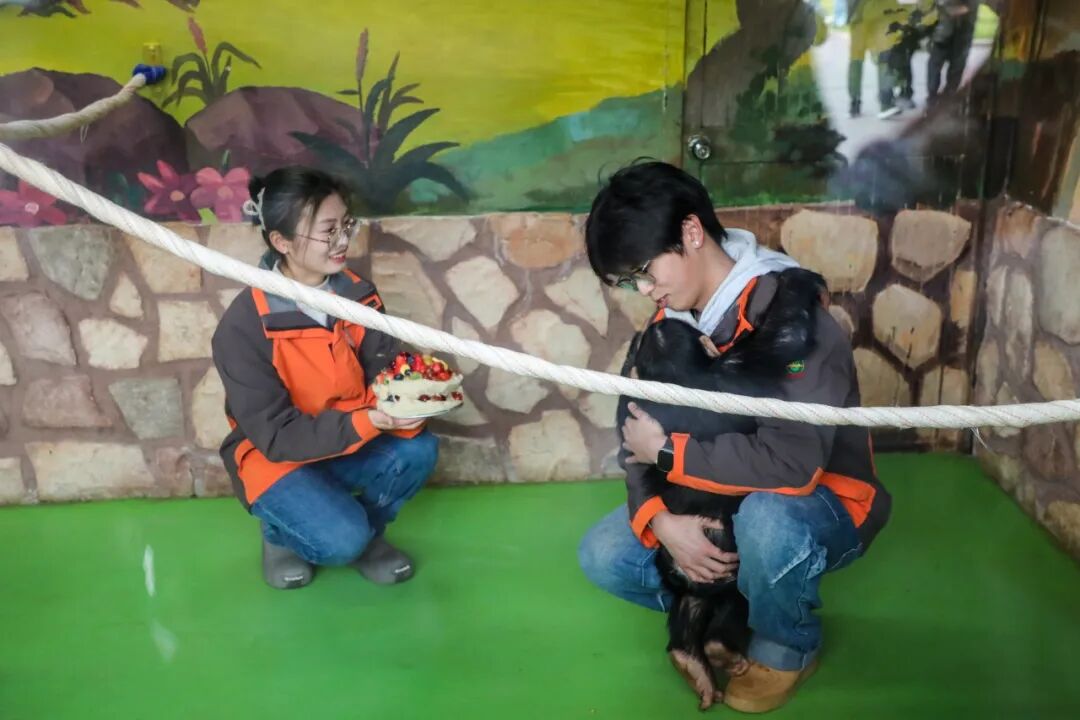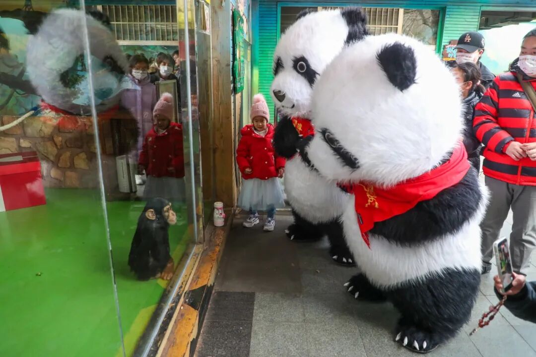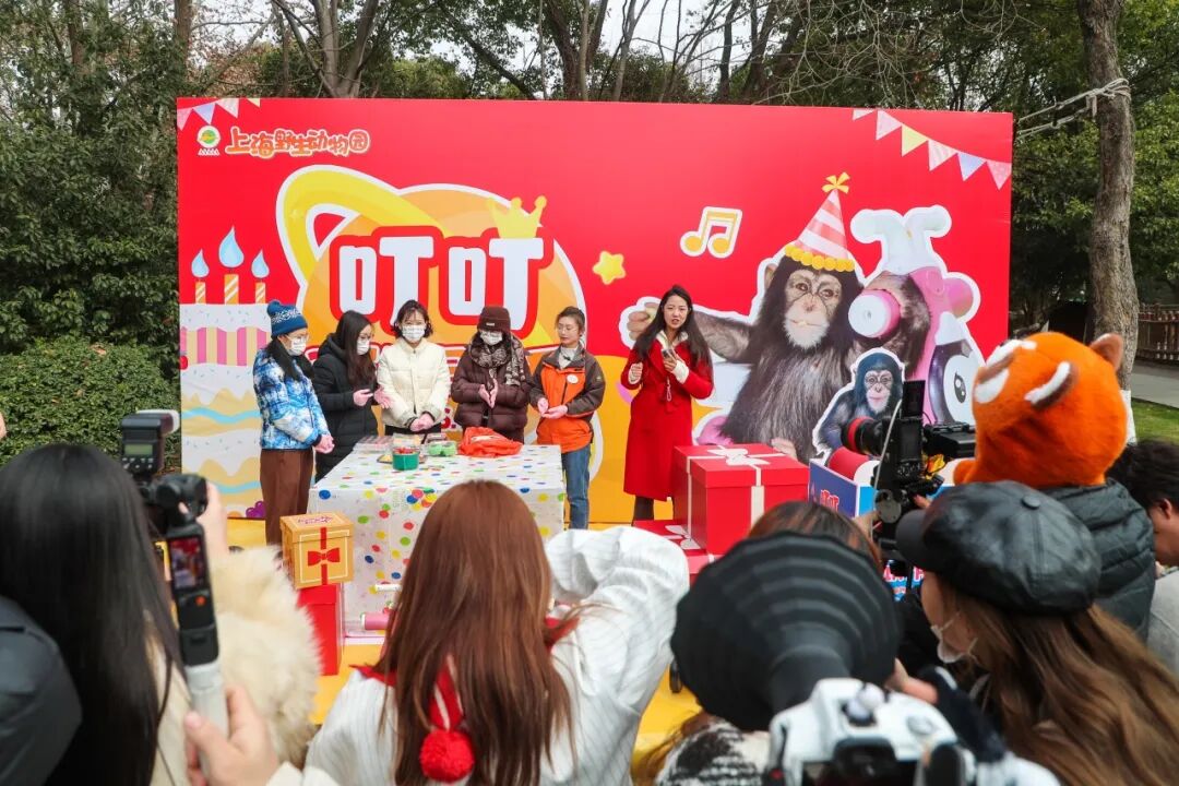 叮叮的小伙伴们也组团来送祝福啦~ 蜘蛛猴豆豆、矮马飘飘,还有大熊猫芊然、芊逸(分身版)纷纷现身生日会现场,隔着玻璃和叮叮热情互动。“胖叮”一会儿爬上屋顶,和小伙伴们“比试”身高,一会儿举着蛋糕大口炫,满脸都是“我今天最幸福”的小骄傲,整个现场被欢声笑语填满,热闹又治愈。