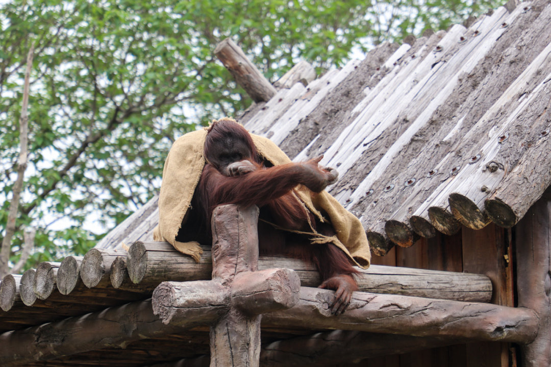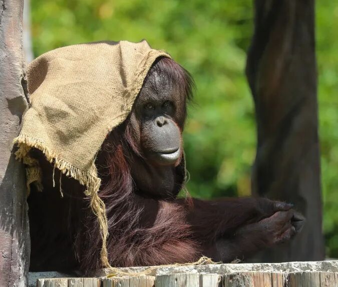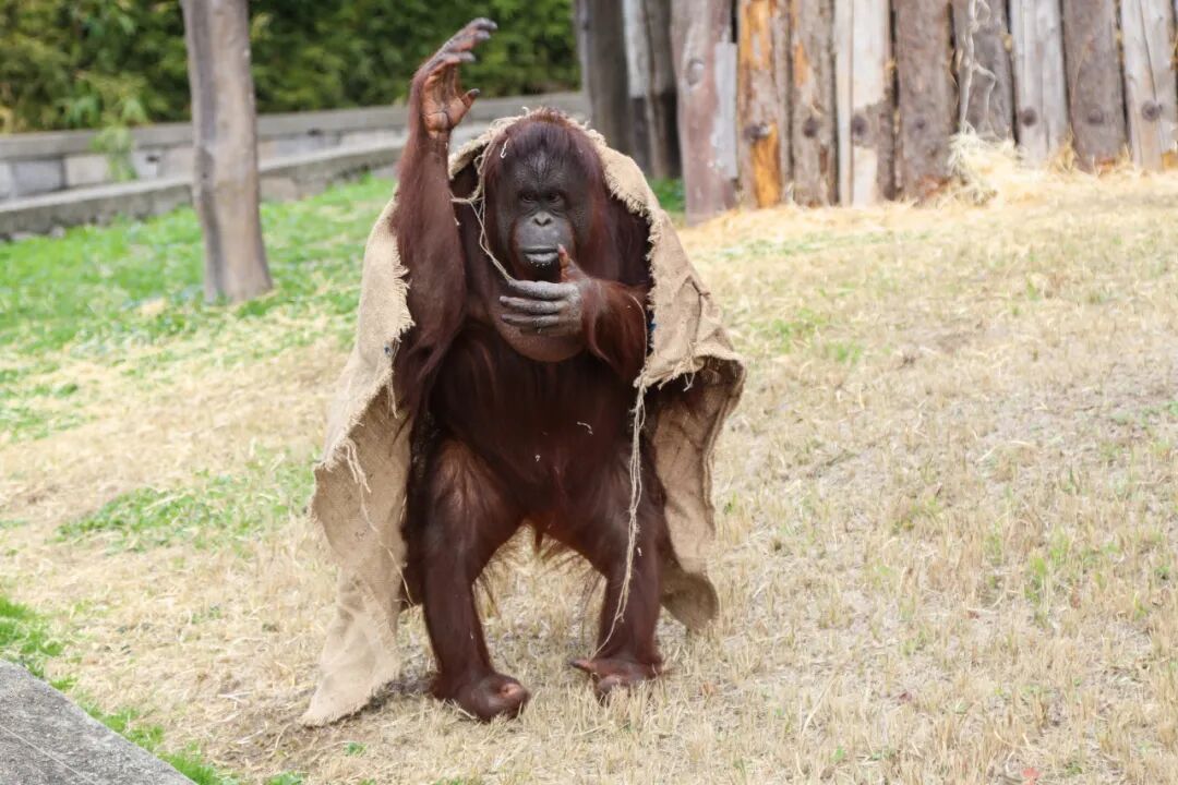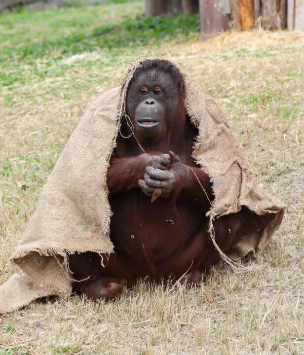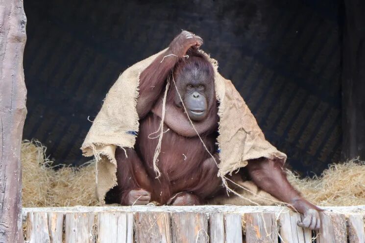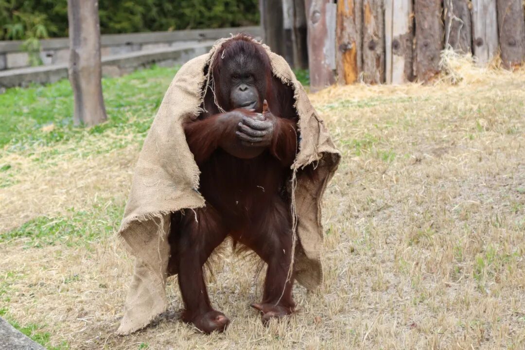 作为原产于印尼和马来西亚热带雨林的树栖动物,红毛猩猩对温度较为敏感,保育员会为它们贴心准备四季物资,而四毛从这些物资里,挖掘出了自己的独家定制“潮牌”——大麻袋。看似平平无奇的麻袋,在四毛眼里可是集保暖、遮阳、凹造型于一身的“宝藏神器”。