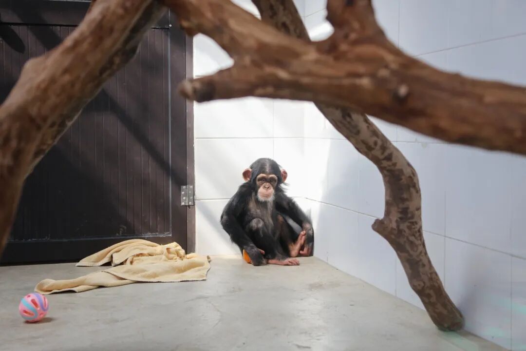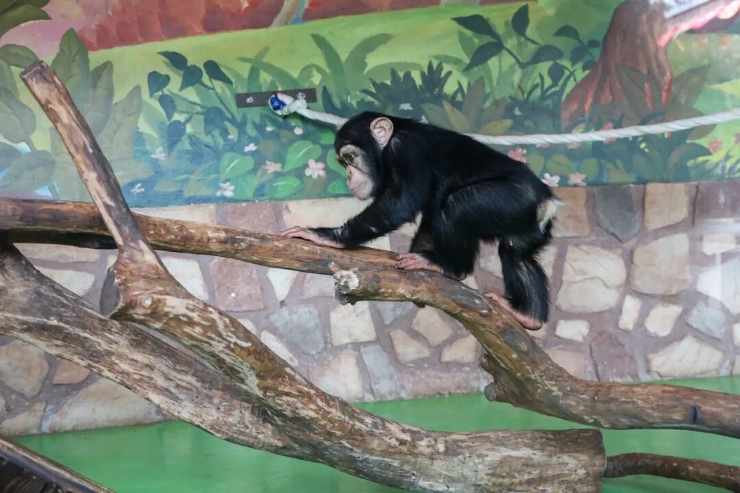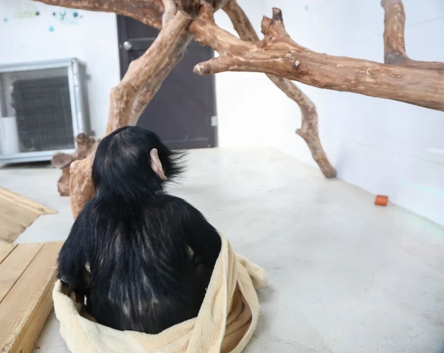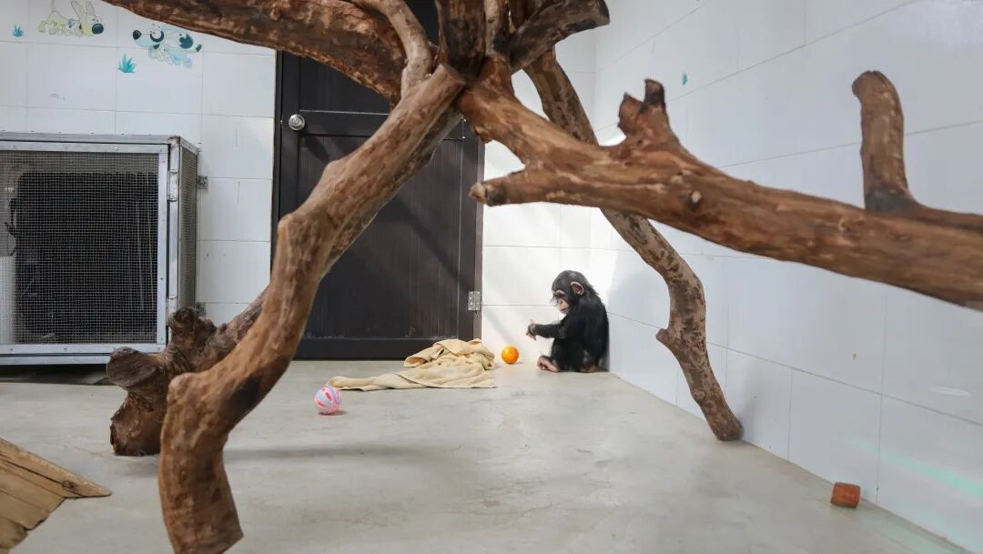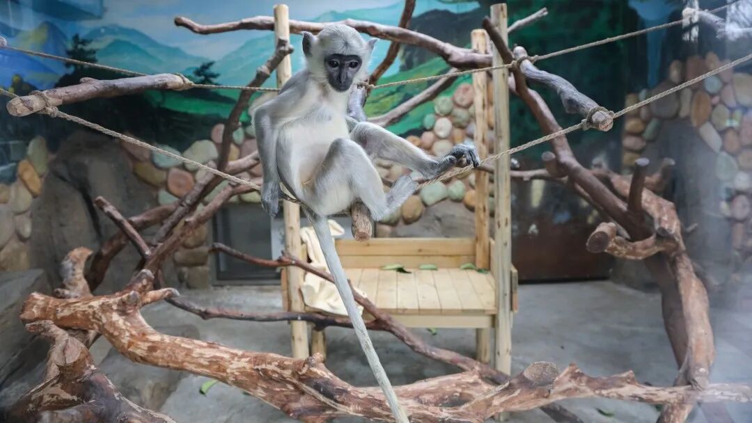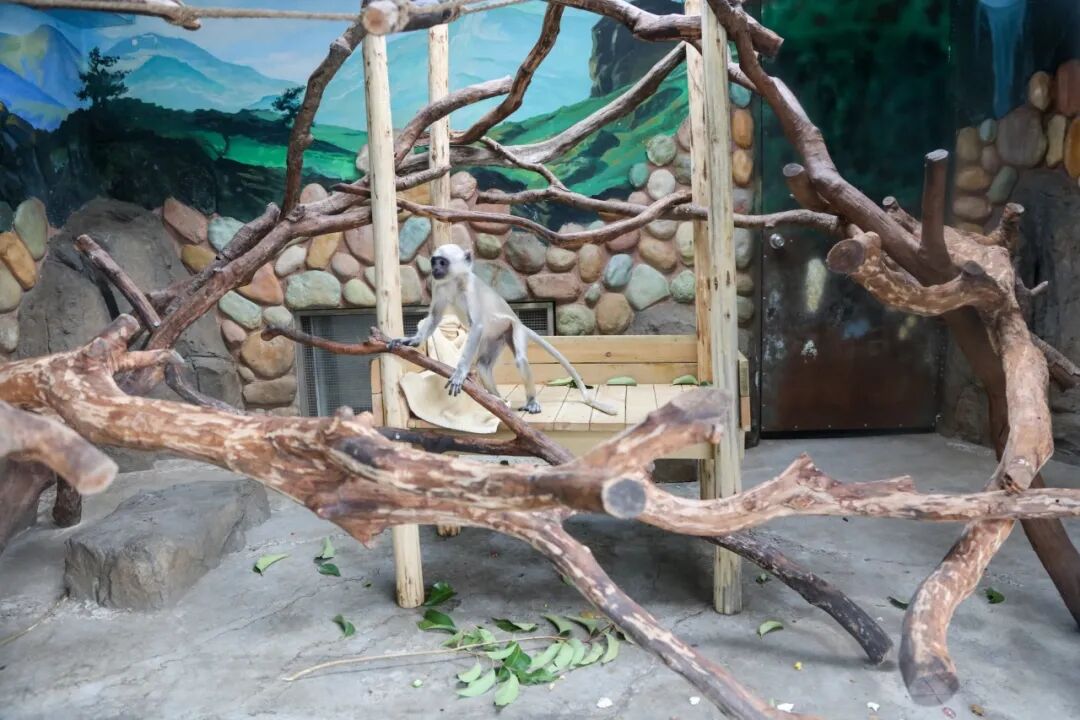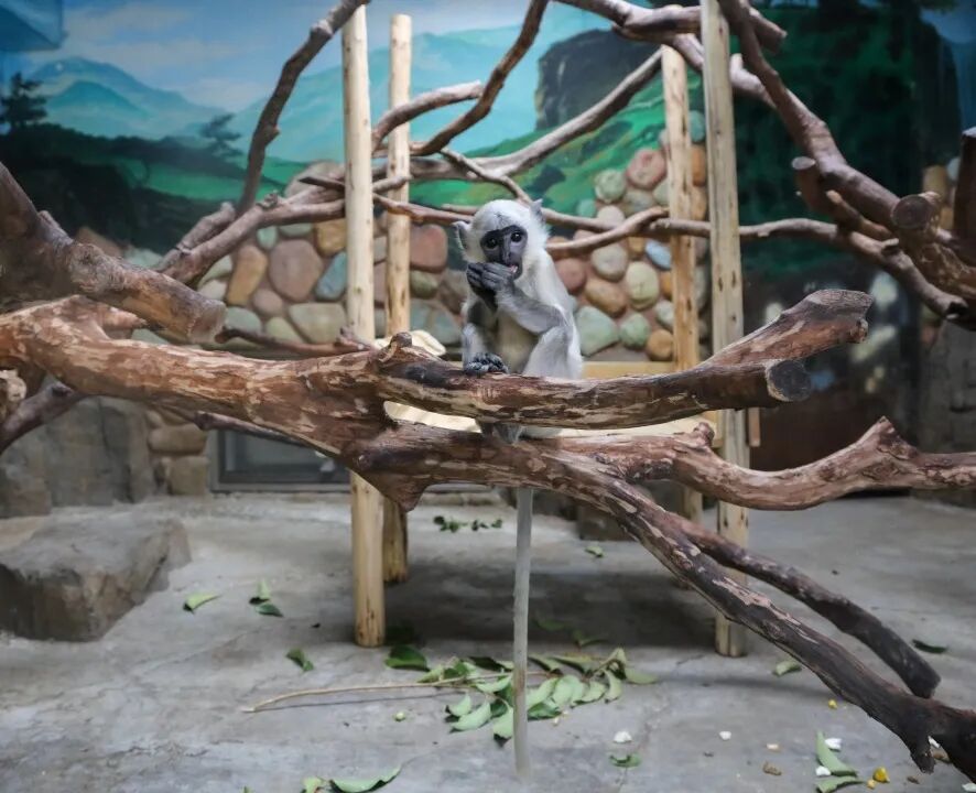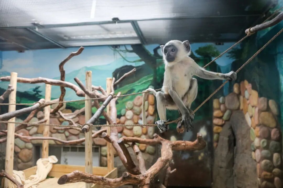 在上海野生动物园的小动物乐园育婴苑里,住着几位特别的小住户——长尾叶猴福宝,以及黑猩猩叮叮和乐乐。为了给这些活泼好动的灵长类宝宝一个更快乐、更贴近自然的成长环境,保育团队最近为它们量身打造了一个全新的游乐场:错落有致的荔枝木栖架丰容,让小家伙们在方寸之间,也能尽情释放天性、快乐成长。