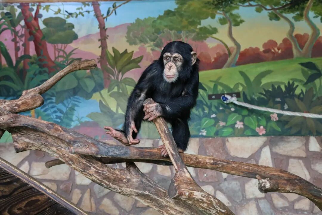 选择荔枝木作为栖架的材料,也是大有讲究。荔枝木质地坚硬、纹理天然,既安全又耐啃咬,非常适合灵长类动物使用。