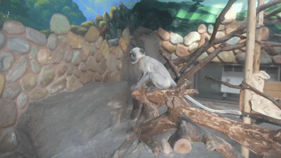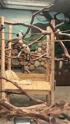 作为天生的攀跳能手,福宝很快便适应了新栖架。有时福宝会坐在栖架上打量玻璃窗外的游客,有时则把栖架当成练习跳跃的工具。它长长的尾巴高高翘起,既能保持平衡,又能辅助发力,在高低错落的栖架平台间反复横跳,灵活又敏捷,相机都很难捕捉它的动作。